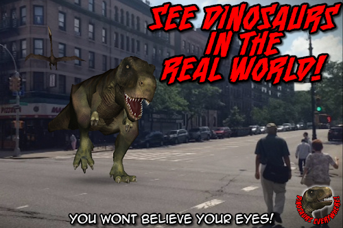 See dinosaurs in the REAL WORLD for the first time ever! See them walking all around you in REAL SIZE! Just as they were when they ruled the Earth!