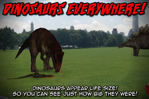 Dinosaurs Everywhere helps you step back in time and see these mighty beasts walking all around you, AS BIG AS THEY WERE IN REAL LIFE!