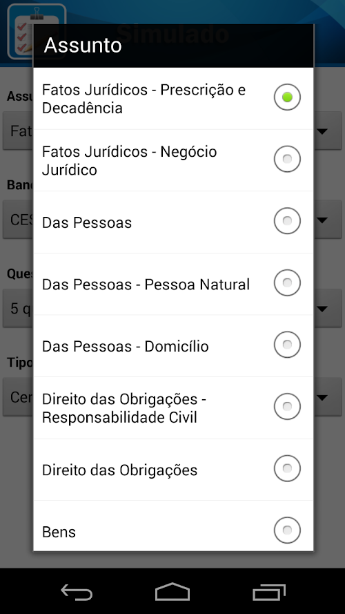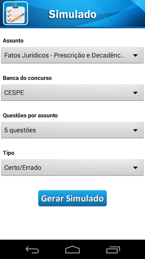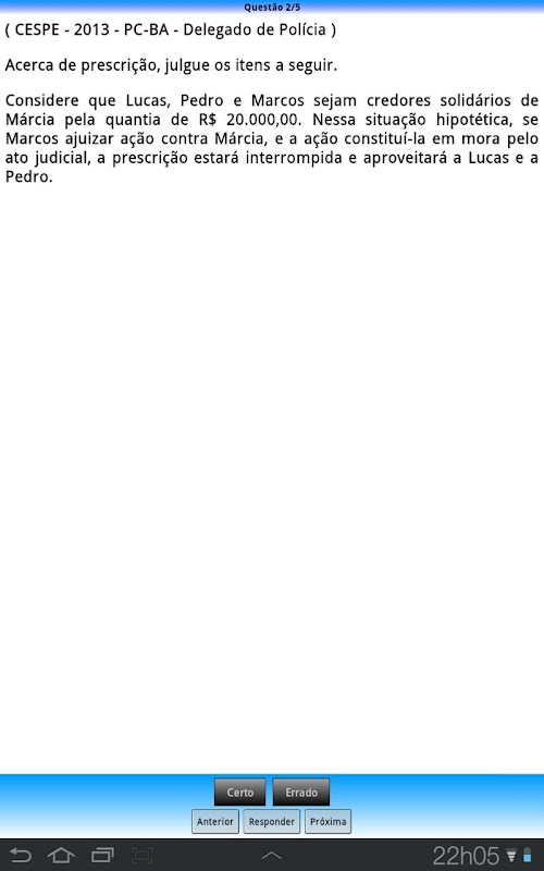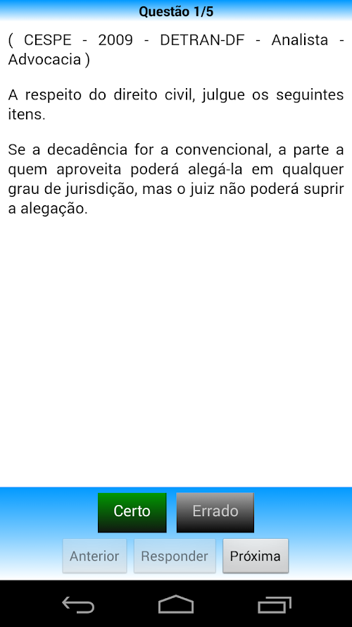 The application is focused for each area of civil law and contains thousands of questions with feedback from previous contests. With it, you can: