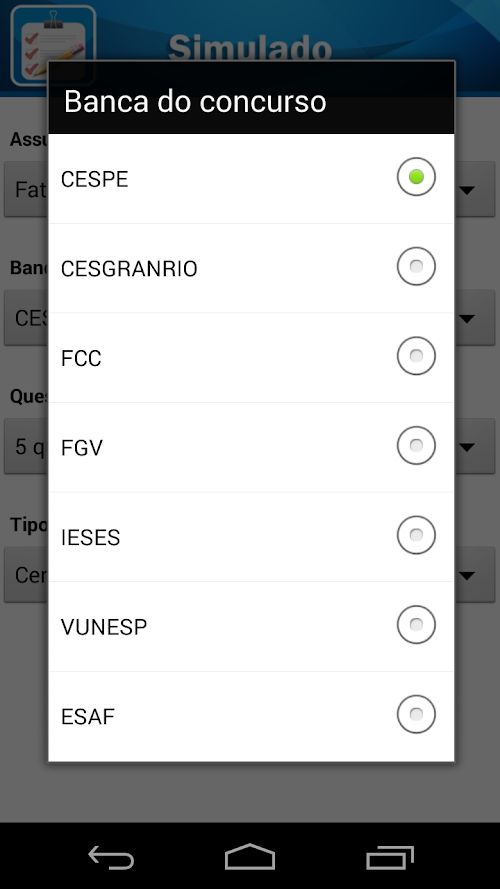 Mais de 3000 questões das Bancas: CESPE CESGRANRIO FCC ESAF IESES VUNESP e FGV.