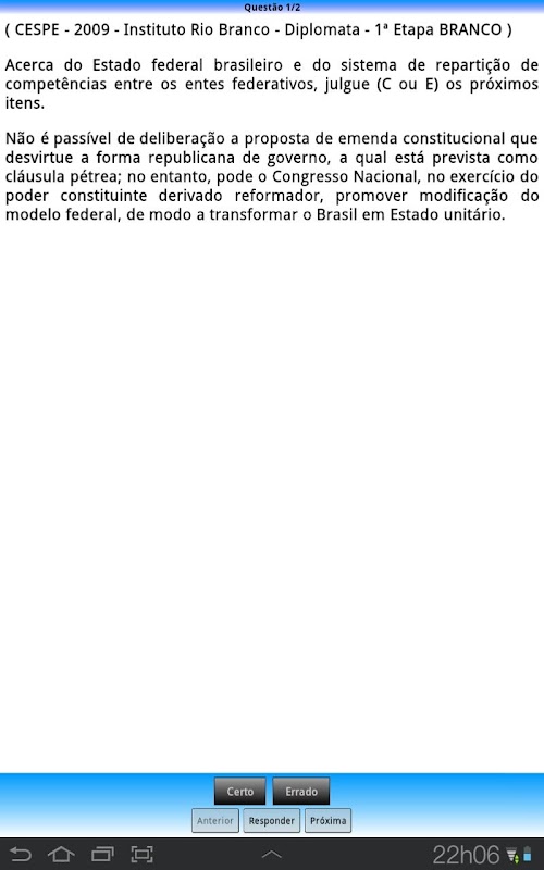Uma dica: Tenha sempre em mente que quanto mais questões você fizer, mais estará acostumado e familiarizado com a matéria e, consequentemente, mais perto da sua aprovação. ----------- ----------- Benefits of PRO version