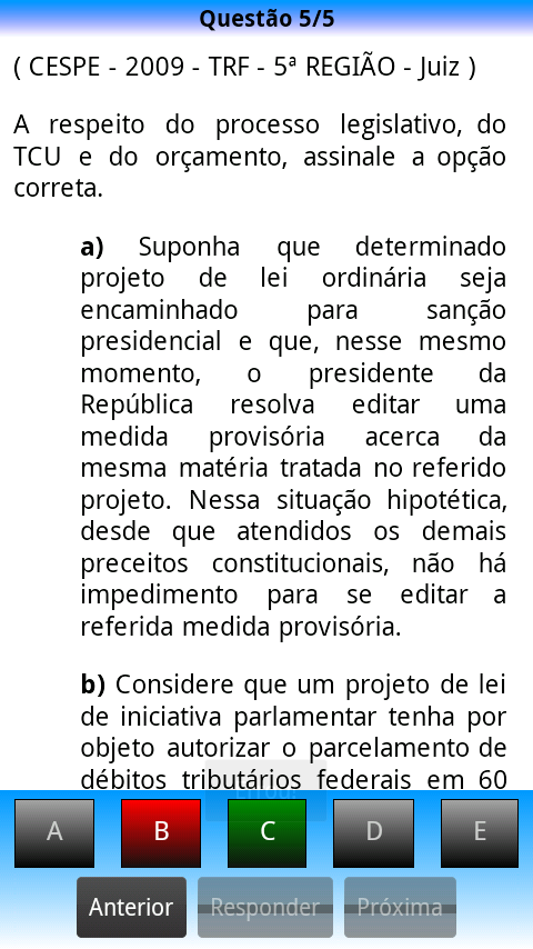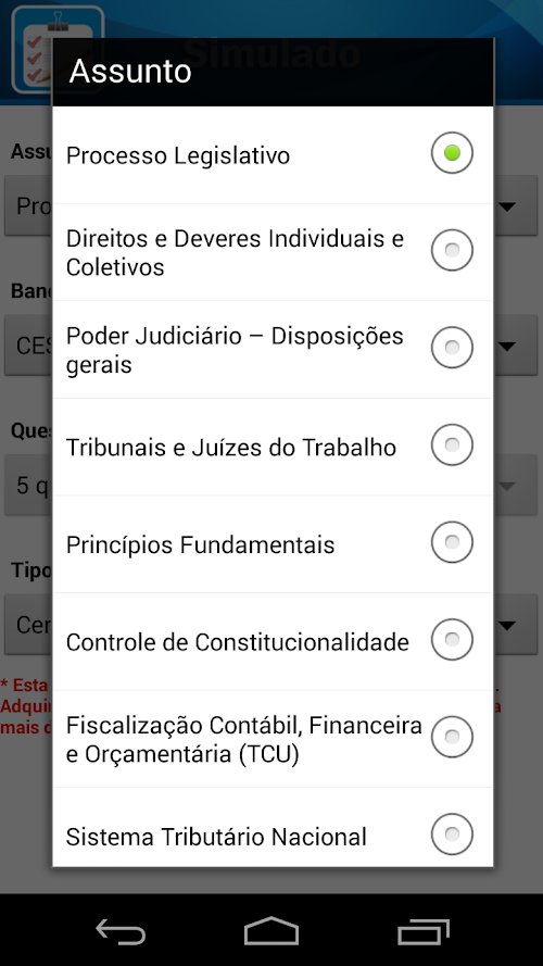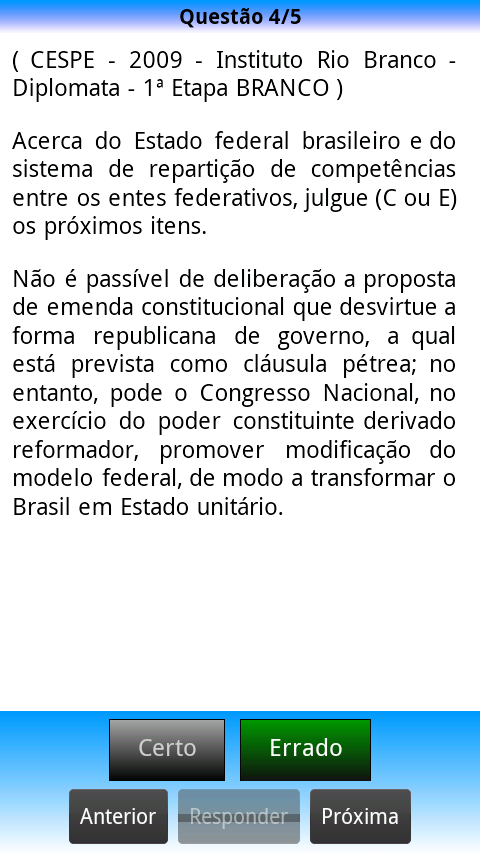 O aplicativo é focado para cada área do Direito Constitucional e contém centenas de questões, com gabarito, de concursos anteriores. Com ele, você poderá: