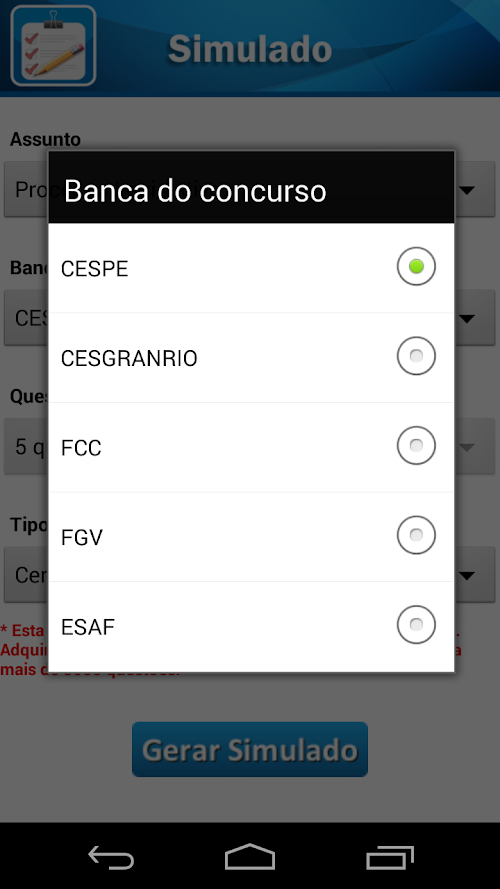 2) Crie simulados com os assuntos que deseja e com quantas questões quiser.
