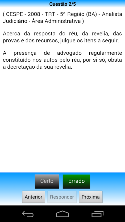 The application is focused for each area of the Civil Procedure Law and contains hundreds of questions with feedback from previous contests. With it, you can: