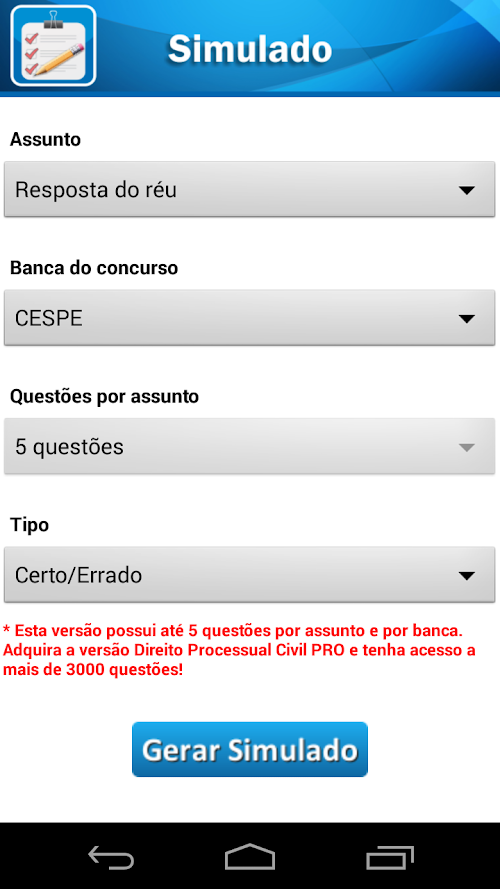 O aplicativo é focado para cada área do Direito Processual Civil e contém centenas de questões, com gabarito, de concursos anteriores. Com ele, você poderá: