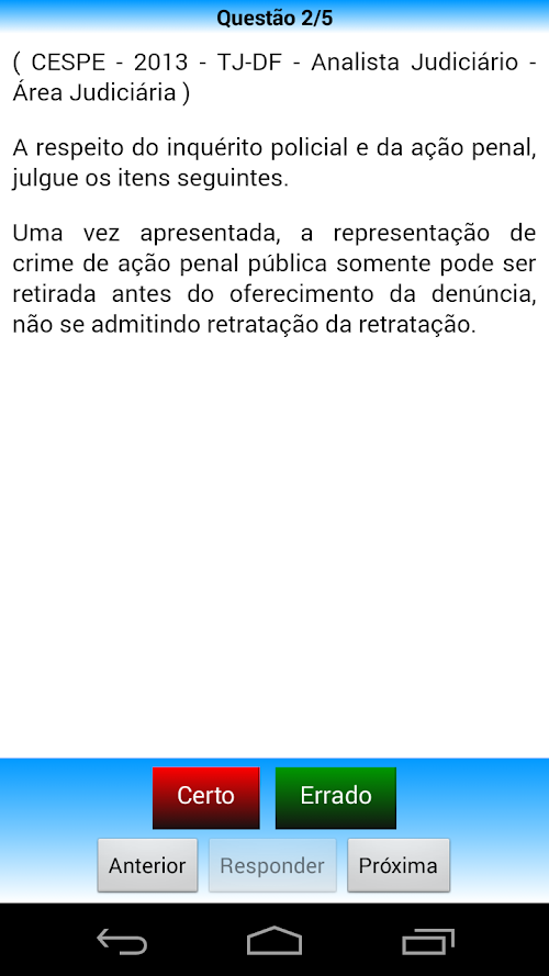 The application is focused for each area of the Criminal Procedural Law and contains hundreds of questions with feedback from previous contests. With it, you can: