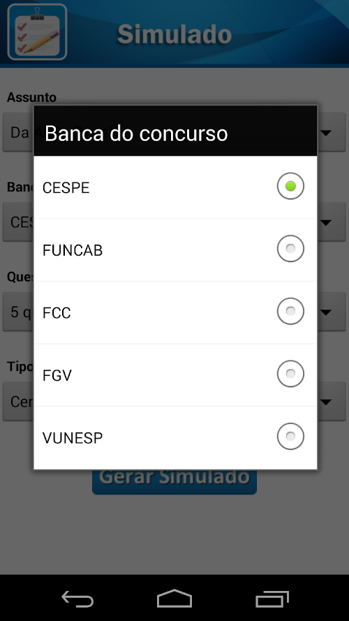 2) Crie simulados com os assuntos que deseja e com quantas questões quiser.