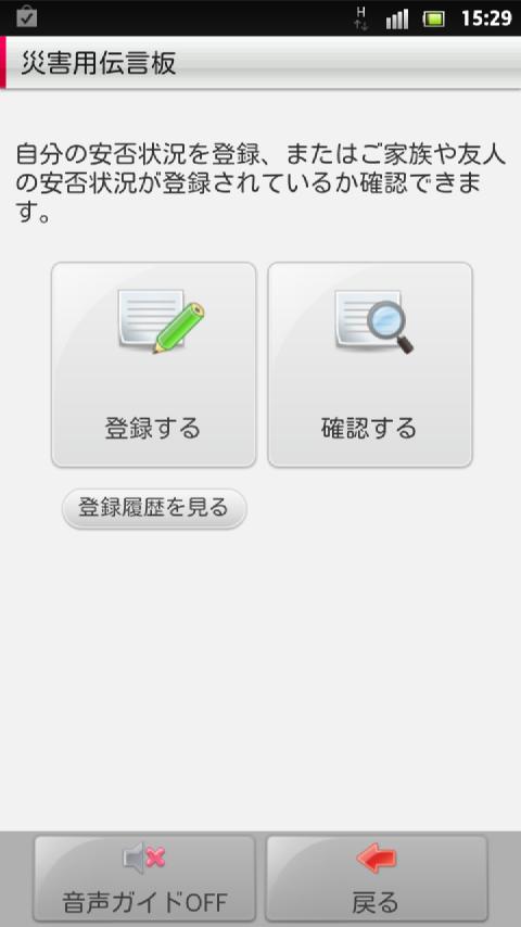 ※Disaster Voice Messaging and Disaster Message Board services are activated when a big disaster occurs, such as a level 6 earthquake (Shindo according to Japanese measurement). The services are only available during disasters but with this trial, you have the opportunity to see how the app works in case of a disaster.