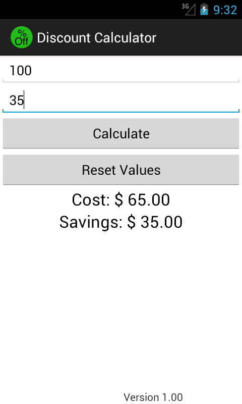 This version of Discount Calculator Android App comes with one universal variant which will work on all the Android devices.