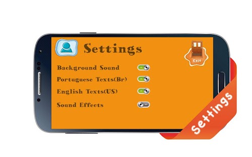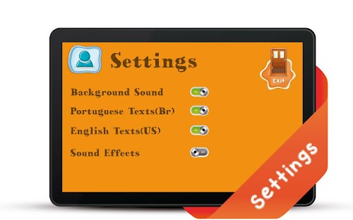 - Screen Settings - The settings are customizable, from this screen mommy and daddy can configure the application to make sounds in a particular language, enable/disable background sound of scenarios, enable/disable the games sound effects etc.