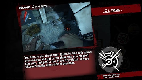 The Dishonored Official Map App is the perfect companion to the game. This app allows players to find and track the hidden collectibles in the game. Detailed maps from each area in the game pinpoint the location of all the Books, Outsider Shrines, Bone Charms, Sokolov's Paintings and Runes. Plus the handy tracking tool allows players to mark which ones they've found and which ones are still outstanding.