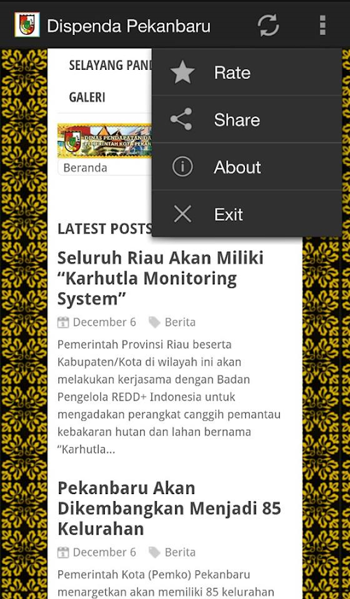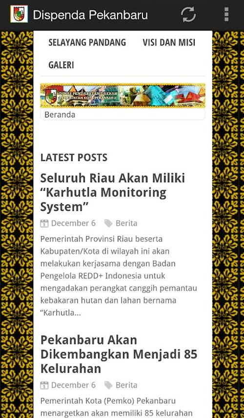 Aplikasi resmi Dinas Pendapatan Daerah (Dispenda) Kota Pekanbaru. Aplikasi ini berisi berita-berita terbaru mengenai pembangunan kota, perekonomian dan perkembangan keuangan kota khususnya mengenai Pajak Daerah dan Retribusi Daerah.