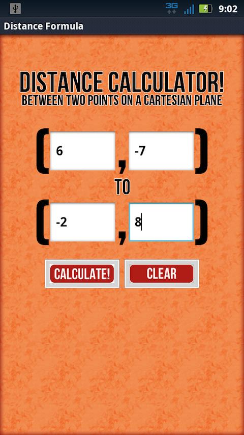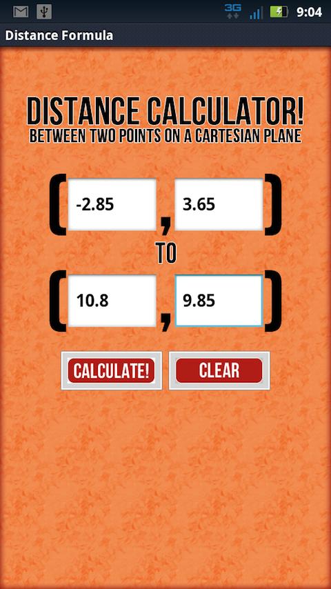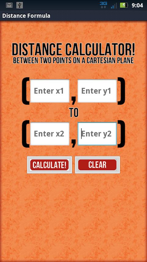 This application will find the distance between two points on a Cartesian plane. Simply enter the (x, y) coordinates of the two points and it will quickly calculate the distance!