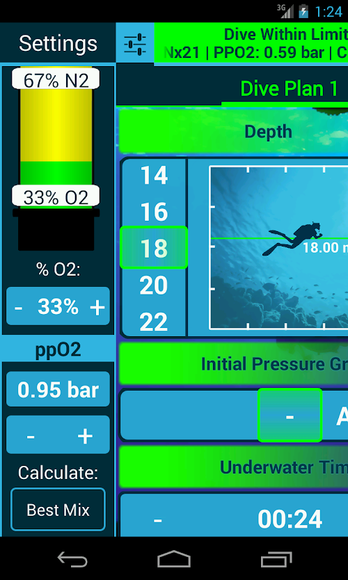 * Best Air Mix calculator (depending of current depth and ppO2).