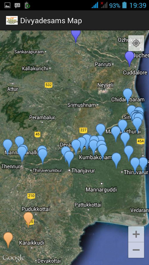 - Divyadesam markers are colored based on the Naadu (Chola naadu, nadu naadu etc.)