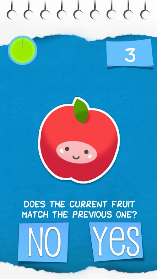 A new fruit is coming: Does it match the last one? Seems pretty easy… but not for long! Time gets shorter and shorter, as your memory gets pushed to its limits for a fast and fun arcade experience! How many of these cute fruits can you get through before the challenge drives you insane?