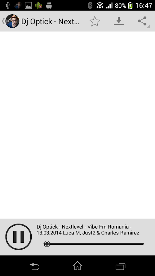 Aceasta aplicatie iti permite sa Asculti / Descarci toate seturile create de Dj Optick ! Auditie placutaThis application allows you to listen / download all the sets created by Dj Optick! Enjoy it