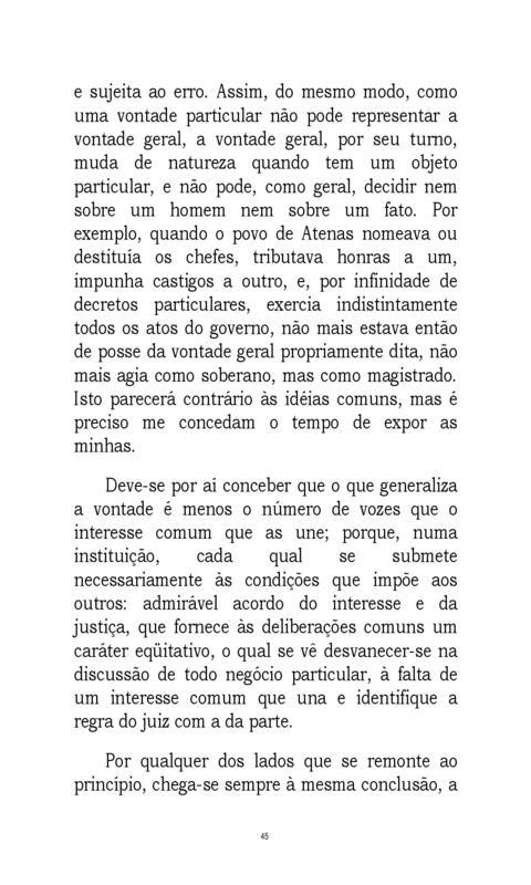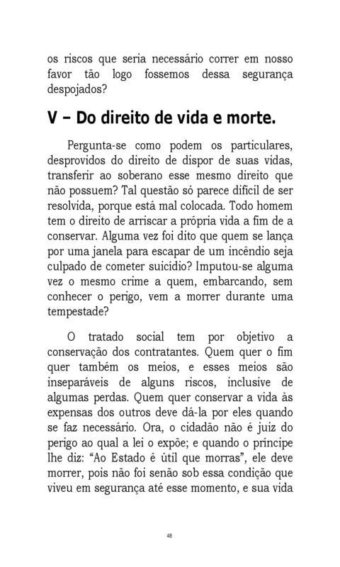 Social Contract or The Social Contract (French: Du Contrat Social Principes du droit politique or, lit. "The Social Contract or Principles of Political Right") is a work of the author Swiss Jean-Jacques Rousseau, considered by many as a his masterpieces; part of a more extensive work, the Political Institutions, which, because it was not completed, had its less important parts destroyed by the author. Excerpt "Most Handsome" and "less unworthy to be offered to the public" (according to Rousseau, in "Warning" of "The Social Contract").