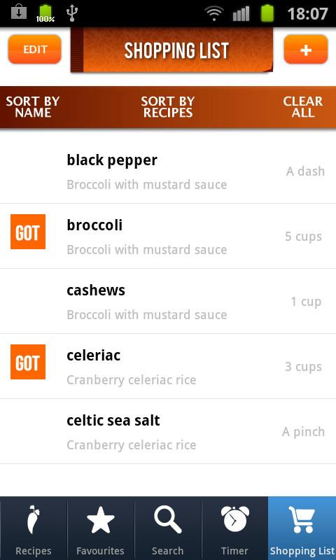 - Shopping is made easy by saving a shopping list for any recipe, directly from recipes with a tap and you can also add other ingredients you need
