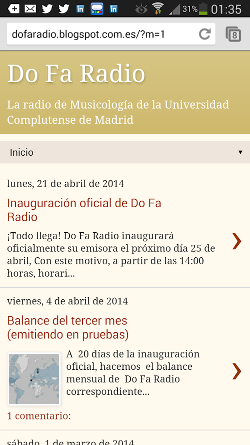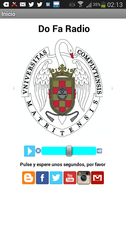 Do Fa Radio es la aplicación que permite acceder a la radio de Musicología de la Universidad Complutense de Madrid y al resto de contenidos online gestionados por esta emisora, entre los que se encuentran sus canales en redes sociales (Blog, Facebook, Twitter, Youtube e Instagram), así como diversas aplicaciones que ayudarán a mejorar la comprensión y recepción de la músicaDo Fa Radio is the application that provides access to radio Musicology at the Complutense University of Madrid and other online content managed by this station, including its channels are social media (Blog, Facebook, Twitter, Youtube and Instagram) and various applications that will help improve the understanding and reception of music