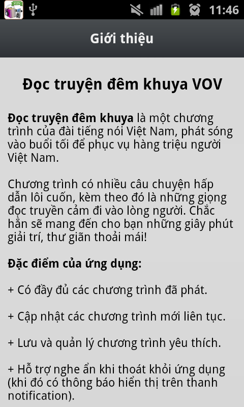 This version of Doc Truyen Dem Khuya VOV Android App comes with one universal variant which will work on all the Android devices.