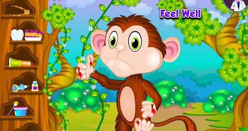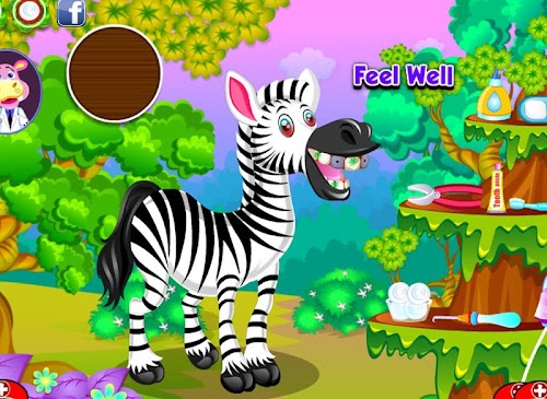 In this game you can help the doctor in the jungle in this great safari adventure. The animals in the jungle are wounded and injured. Help them to be cured! You can be the jungle doctor and help the zebra, elephant and monkey. First you need to cure them and taking care of them. When they are better you can play with them, wash them, and give them food. With the right treatment and medicine the animals are quickly better. The zebra also needs some dental help, so you are also a dentist with some dental instruments. Cure all wounds and make the jungle animals happy again!