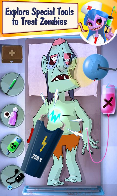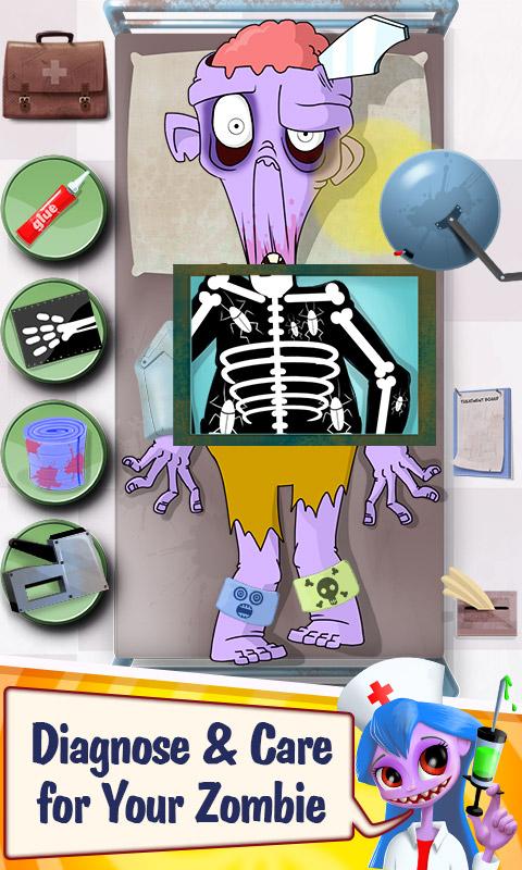 > Diagnose your Zombie patients with some cool tools like the stethoscope, thermometer, x-ray, and electrocardiogram!