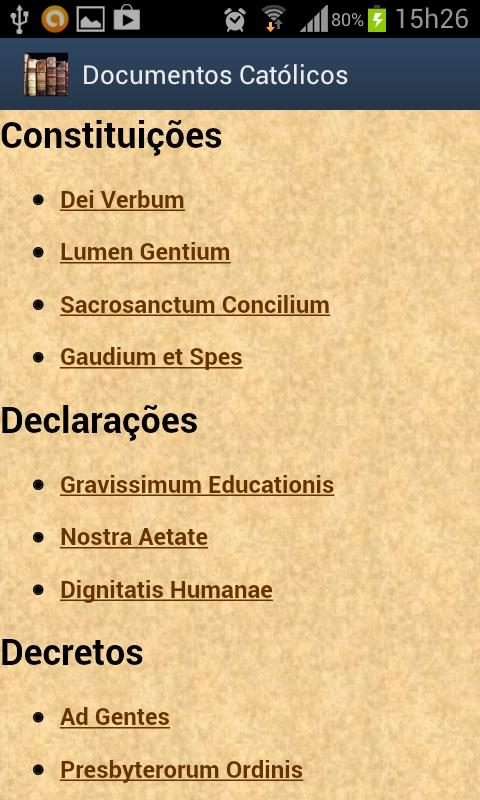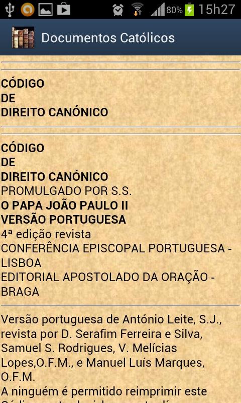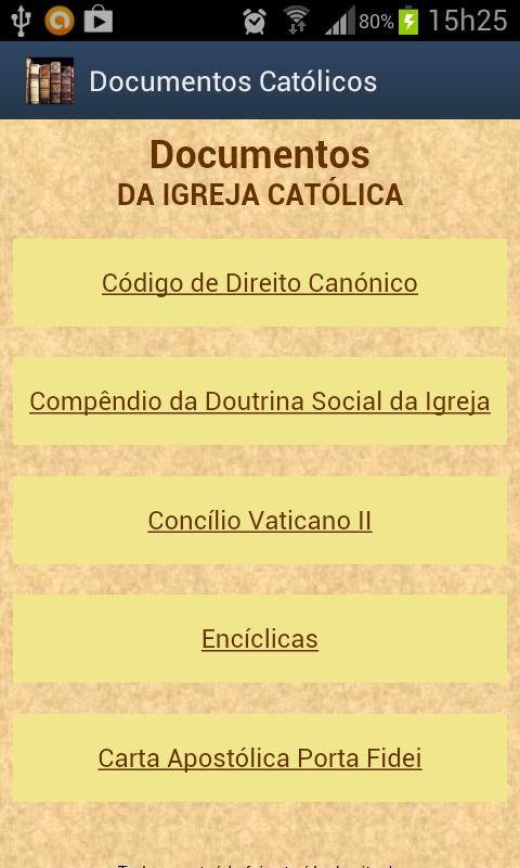 Este aplicativo pretende apresentar os principais e documentos da Igreja Católica Apostólica Romana.