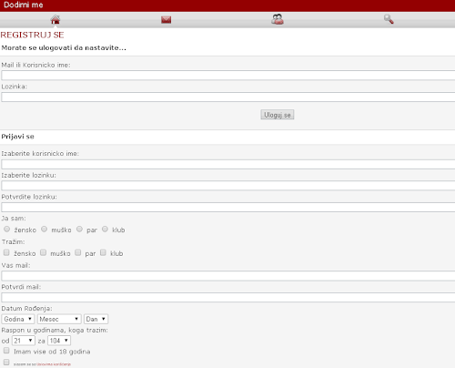 Dobro došli na DODIRNI ME, najbolji sajt za upoznavanje i druženje preko interneta. Naš sajt je potpuno besplatan i brine o vašoj privatnosti. Ovde možete komunicirati sa ljudima iz Srbije i širom sveta bilo da ste u potrazi za prijateljima, flertom, druženjem ili srodnom dušom. Pogledajte profile naših članova, izaberite nekog sa sličnim interesovanjima (spajalica) i započnite komunikaciju.Welcome to Touch me, the best site for dating over the internet. Our site is completely free and takes care about your privacy. Here you can interact with people from Serbia and around the world whether you are looking for friends, flirt, socialize or soulmate. See our member profile, select someone with similar interests (staple) and start communicating.