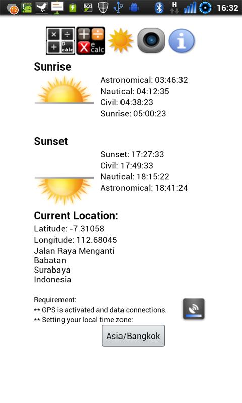 4. Calculates Civil, Astronomical and Nautical Sunrise Sunset times (Require GPS permission).