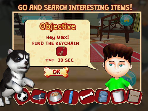 Time to play with cute dogs in this dog simulator 3d game for kids. You love simulation games? It’s your chance to play with a cute and funny dog and simulate inside the house in this 3D dog simulator. Play in the house, running, jumping and hitting objects and causing mischief. Create mess all around as dogs do but don’t be lazy while completing your tasks. Hitting objects gives you points. Dog keepers usually enjoy with puppy dogs as their pet animal because they are long term companions. Pick up things, search various stuff and find your way to complete your objectives. The environment, interactive sounds and fun gameplay makes it even more interesting to play. The better you do the more points you earn.