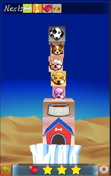Doggie Stack is a simple square box stacking game, all the dogs boxes stacked on an island, you can easily pass stage.