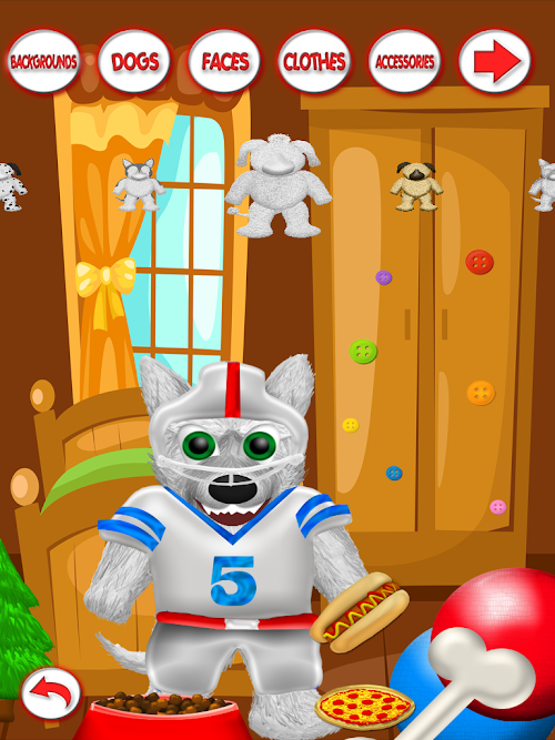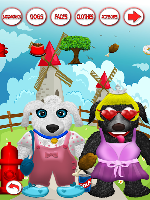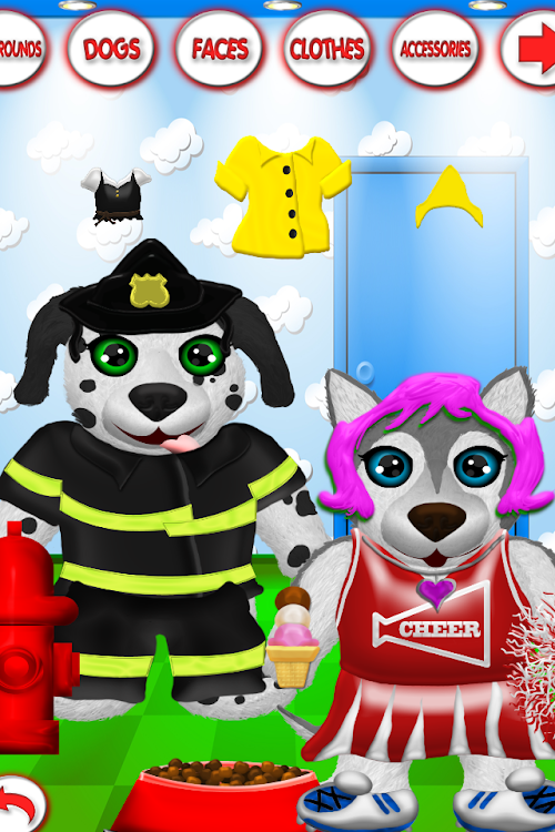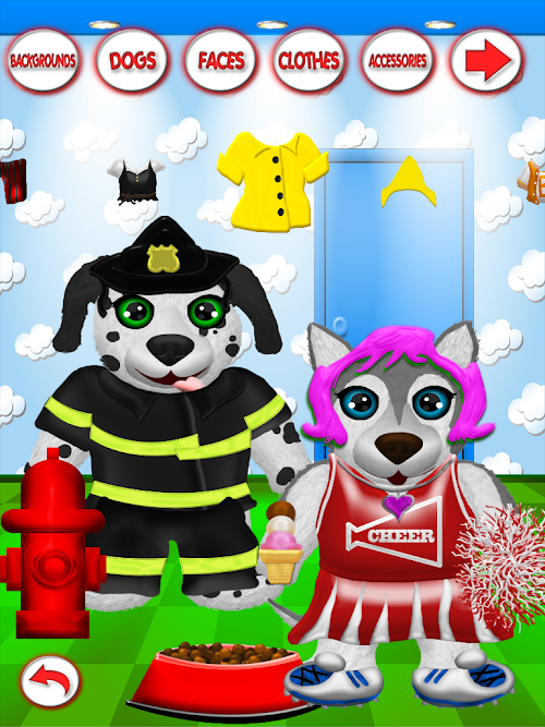 Create your own Dog worlds for your little pup! Get your Doggy ready for a baseball game, a day at sea, or work. Dress up your Dog with hats, wigs, funny eyes and mouths, glasses, jewelry, ties and more. You can also feed your Doggy some of its favorite snacks like kibble, pizza, ice cream and donuts.