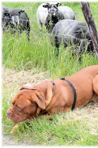 The Dogue de Bordeaux, Bordeaux Mastiff, French Mastiff or Bordeauxdog is a large French Mastiff breed—and one of the most ancient French dog breeds. A typical brachycephalic molossoid type breed, the Bordeaux is a very powerful dog, with a very muscular body. This brawny breed has been put to work in many different capacities, from pulling carts and hauling heavy objects, to guarding flocks and, historically, the castles of the European elite.