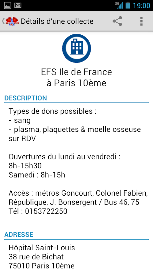 The application is published by an association of volunteer blood donors. It is completely free, it is an independent initiative of the EFS (French Blood Establishment), driven by our association composed exclusively of volunteers and blood donors.