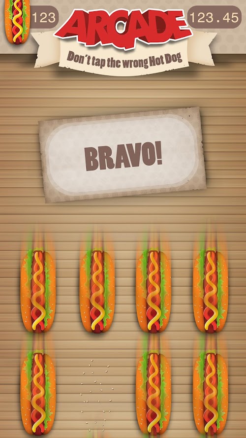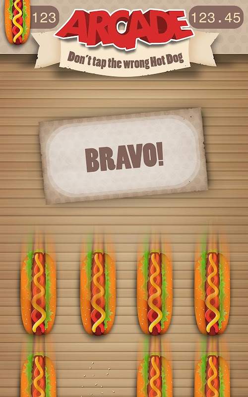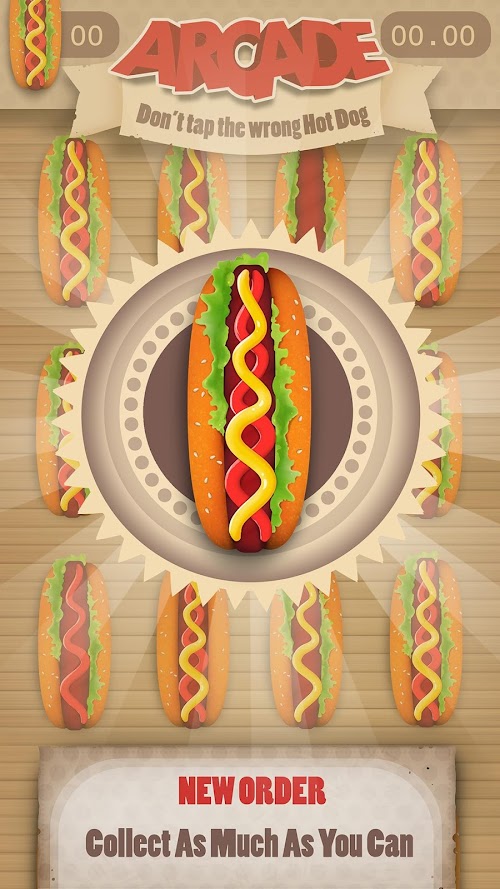 In Arcade game mode hot dog line speeds up until you make a mistake. Try to collect as many of them as you can before that happens.
