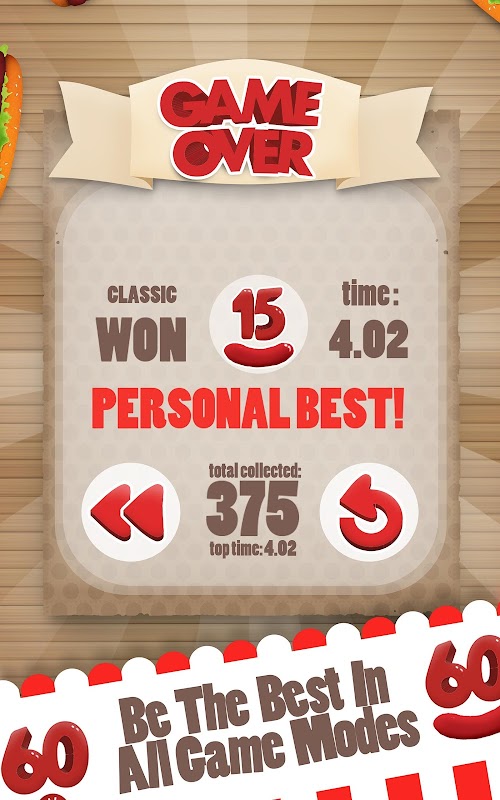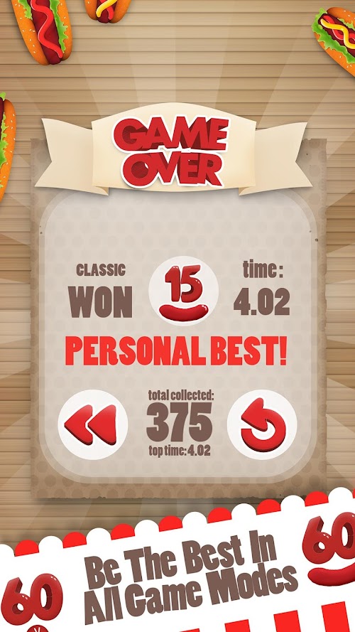 In Classic game mode you should collect 15, 30 or 60 hot dogs in the shortest time you can.