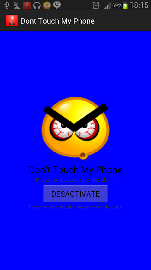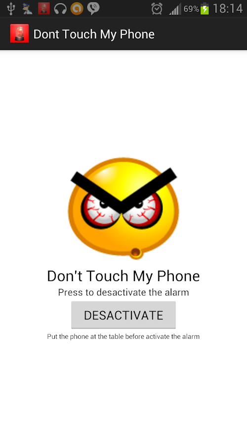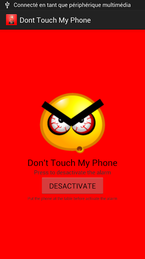 this Alarm keeps your phone save from curious people and burglars. Once you activate the alarm, no one could touch it, because the alarm will be triggered if any one try to take the phone.