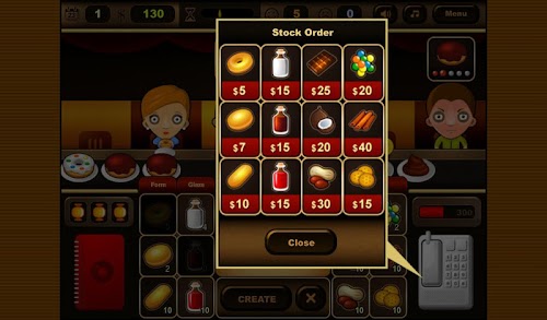 Prepare your sweet tooth and indulge into the sugary coated donuts! Watch as the customers arrive ordering their favorite donuts in your humble shop. Remember to check your recipe book if you don't know how to make the ordered the luscious rounded treat! Observe you limited stocks and don't forget to order more ingredients to entertain the customers' orders of their syrupy sweet goodness!
