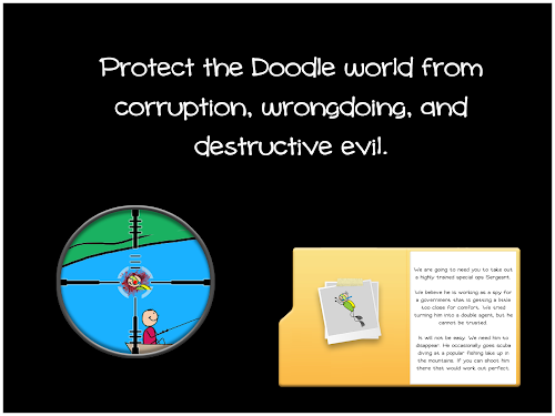 Be a sharpshooting sniper for a top secret organization that masterminds events and controls the world through assassinations. You receive a missions to gun down a target in a unique situation. These targets will need to be killed to prevent wars and protect the doodle world from anarchy. It will be just you and your rifle hunting down some of the worst scum in the doodle world.