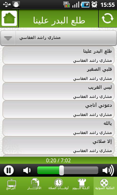 • الإستماع إلى عشرات المقاطع الصوتيّة الدينية ضمن مكتبة صوتية للقرآن الكريم و لعدد من المنشدين ( مشاري راشد العفاسي, سامي يوسف, ماهر زين...)