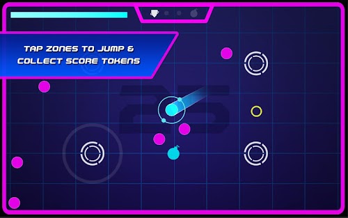 Tap one of the 4 safe zones to dash between them. Rush between safe zones, avoid enemies and collect tokens to increase your score. But be careful, if you crash into an enemy whilst trying to increase your score, it's game over.