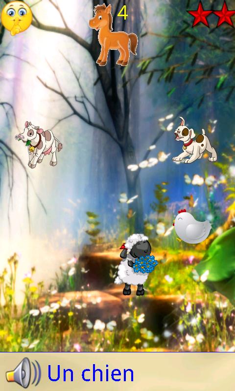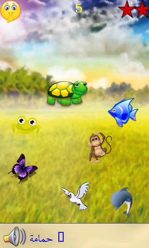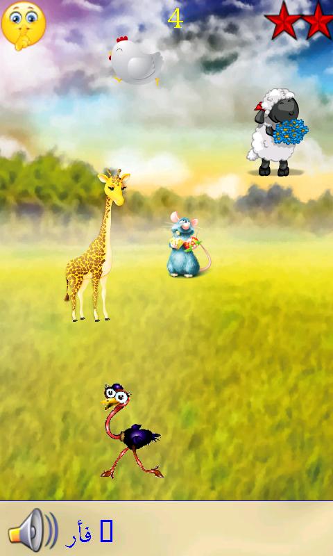 يجب على الطفل العثور على الحيوان الصحيح اللذي يكون اسمه معروضا في الجزء السفلي من الشاشة.