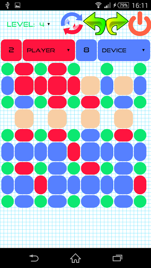 Get Dots And Boxes Deluxe and try your skills against your device or against a friend of yours on six board sizes - 3x3, 4x4, 5x5, 6x6, 7x7 and 8x8. Possibility to undo every move. Perfect game for time killing and strategic thinking!