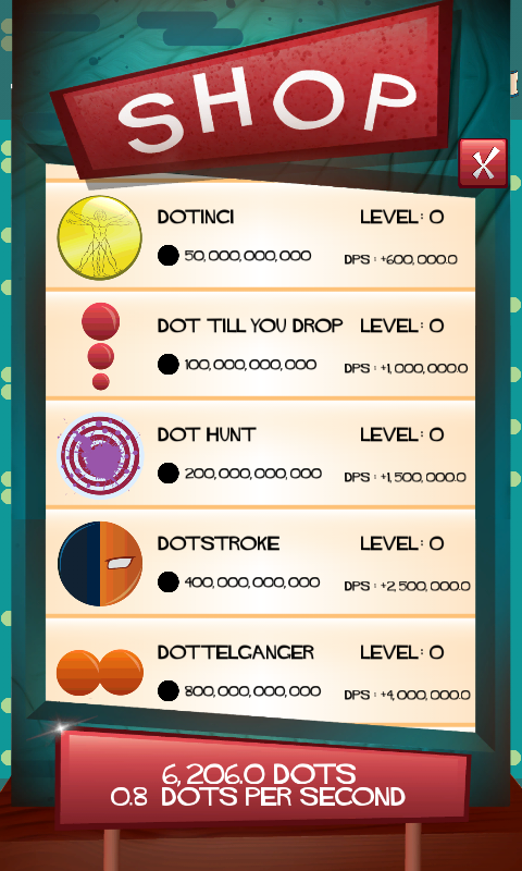 While playing this clickers game you collect dots by clicking on the largest dot. With the dots that you have collected you can go to the dots store and trade the dots for some amazing upgrades. Rest assured that these upgrades are very helpful in these funny games. This is a true fun for mobile! Become a fast clicker in these cool games that are clicker games! Get Dots Clicker now!