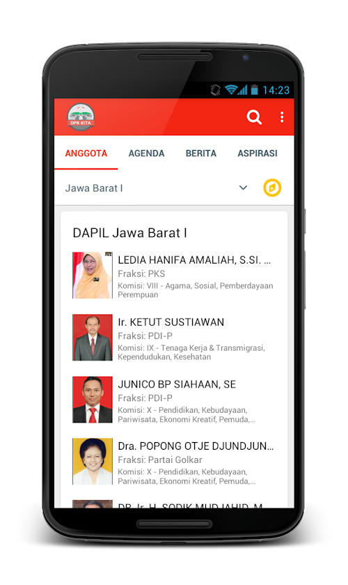 Info lebih lanjut, kunjungi http://dprkita.org dan http://perludem.orgApplications "Parliament WE" is the application of Perludem (Society for Elections and Democracy) with the spirit and purpose of closer relations between members of Parliament with the people in his constituency through two-way communication. Through this application the public can interact directly with representatives in parliament. Parliamentarians can also respond and provide the latest developments of the activities carried out during his tenure. The more specific features of the application are owned by the House of Representatives WE are as follows: