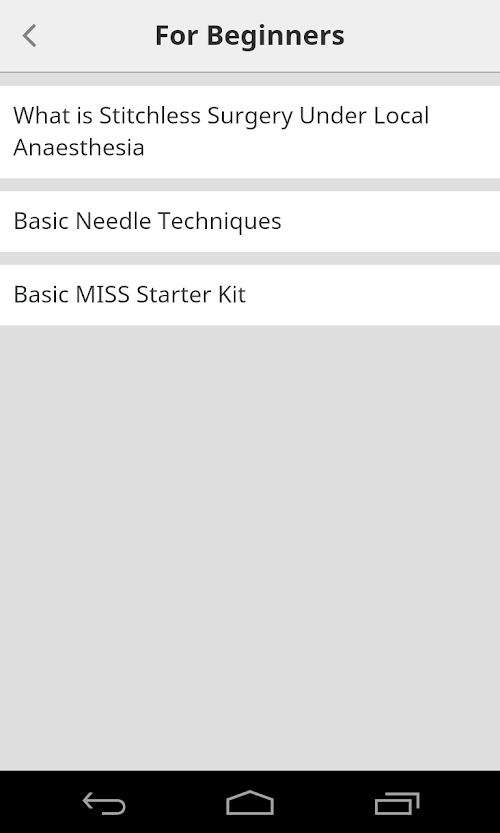 - What is stitchless surgery under local anesthesia, Basic needle techniques, Starter kit Videos Basic Reading material