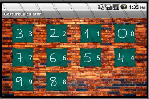 The calculation starts with drawing numbers in gesture view, if the given number is recognizable it will be showed in background else retrying is needed. Numbers list is also provided that will help user to choose desired number. It has an option for changing writing and text color,which improves look and feel of calculation.