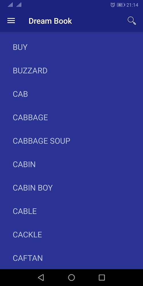 A nice feature of our book of dreams is - an easy functional interface with a quick search for interpretation!