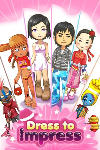 Go on daily fashion trips—walk down the glamorous runways in Paris and Madrid using the "Impress" feature to earn Fashion Points. Use these points to purchase more items for your avatar, such as skins, eyes, clothes, etc. Spread the glamour! Express your style! Dress to impress!